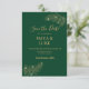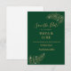 A charming save-the-date invitation features a Emerald Green background framed by delicate leafy details for a soft, elegant touch. Stylish, refined text highlights the occasion, with customizable spaces for names, date, and address. A discreet QR code is included, allowing guests to easily scan and RSVP, combining classic design with modern convenience.