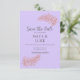 A charming save-the-date invitation features a Violet background framed by delicate leafy details for a soft, elegant touch. Stylish, refined text highlights the occasion, with customizable spaces for names, date, and address. Combining classic design with modern convenience.