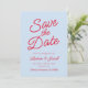This is a Modern Minimal Minimalist Blue and Red Wedding Save The Date Card!