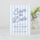 This is a Modern Minimal Minimalist Blue Stripes Wedding Save The Date Card!