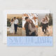 Elegant and stylish save the date card featuring a modern serif font that says "save the date" with your signature in a hand written style font. There are 3 photos on the front and one on the back. The background is icy blue.