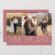Elegant and stylish save the date card featuring a modern serif font that says "save the date" with your signature in a hand written style font. There are 3 photos on the front and one on the back. The background is pink.