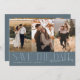 Elegant and stylish save the date card featuring a modern serif font that says "save the date" with your signature in a hand written style font. There are 3 photos on the front and one on the back. The background is slate blue.