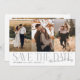 Elegant and stylish save the date card featuring a modern serif font that says "save the date" with your signature in a hand written style font. There are 3 photos on the front and one on the back. The background is white.