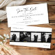 This modern yet elegant save the date card features a filmstrip photo frame with four photos and classic typography on the front. There is plenty of space on the back of the card for all the important details plus a modern calligraphy script "Save The Date" greeting. Background, greeting, and text colors are customizable. *If your photo is color and you would like it to be black and white, simply use the photo filters in the editor tool.