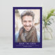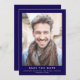 Modern photo Graduation Save the Date Navy Blue. Available digitally and printed. Minimalist and simple. Change the words as required and replace the sample photos with your own.