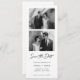 Share your exciting news with this photo strip save the date card. Designed to look like a bookmark, it features your favorite black and white engagement photos. Its simple style gives your announcement a classic and playful touch, making it feel perfect for you.