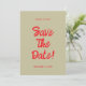 Este casamento moderno e retrô minimalista Salve a Modelo de Data é excelente para você. Se você está procurando por um bonito, elegante e fácil personalização Casamento Salve a Modelo de Data. Uma mão branca, simples e cinzenta, vermelha e branca, escrita à mão branca, salve o convite de data. O que apresenta vermelho mínimo vívido, salve a data datilografia escrita a negrito com a mão sobre fundo verde claro e colorido. E mesa desenhada à mão de vidro champanhe, pedaço de bolo, vela e flor. Pegue este casamento de na moda, salve a data e faça seus convites realmente comprometidos.