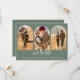 Este simples casamento moderno salve o cartão de data em sage green é perfeito para compartilhar com seus convidados de casamento as boas notícias de seu próximo casamento. O estilo minimalista apresenta três imagens de arco da noiva e do noivo na frente com as palavras "salvar a data" em uma fonte moderna de script. As costas têm espaço para uma foto adicional de qualquer outro detalhe que você queira compartilhar sobre seu casamento, incluindo seu site de casamento.