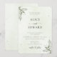 The design is rooted in minimalist sophistication, pairing a romantic, airy fine-line script with a clean, structured serif typeface for a high-end editorial feel. This botanical aesthetic is perfectly suited for garden weddings, outdoor spring celebrations, or chic modern ceremonies. Printed on a crisp white background, the organic green tones and spacious layout provide a timeless, high-quality look that will leave a lasting impression on your guests.
