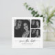 Reserve A Data Modern Script Black & White 3 Photo Save the Date