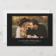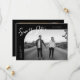 Modern and stylish save the date card featuring a hand lettered script text that says "save the date." One photo in the font and one on the back. The background is black.