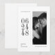 Instead of the usual horizontal text, it places your wedding date in a cool, modern vertical layout right alongside your black and white couple photo. It completely nails that chic, monochrome wedding stationery vibe without feeling cluttered. Whether you are planning a grand city event or a stylish destination wedding, this minimalist layout gives off pure "old money" energy.