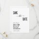 Este convite de casamento moderno "salve a data" apresenta um texto personalizado preto elegante em um fundo branco nítido, incorporando a essência do minimalismo. O design é elegante e atemporal, perfeito para casais que apreciam simplicidade e sofisticação.