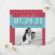 O texto e a foto de noivado neste cartão moderno de "save the date" para casamento com foto azul aqua (turquesa, azul ovo de robínia) e vermelho são totalmente personalizáveis. Você pode alterar a maior parte do texto e a foto de noivado usando a opção personalizar. Para alterar o restante do texto ou fazer alterações mais extensas no cartão, incluindo alterar a fonte, a cor da fonte ou a posição do texto, use a opção personalizar. Você também pode alterar o tipo de papel nas opções de convite. Este é um belo cartão de "save the date" para um casamento com uma paleta de cores azul aqua e vermelho.