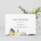 Esta moderna horizontal tropical salvando a data é perfeita para o seu casamento de destino de boho de verão. Projetado com o clássico elegante amarelo floral que se pop a partir de cinza verde costeiro, incluindo folha de palma e samambaia. Com todas essas coloridas flores aquáticas e folhas de cinza, você tem certeza que tem a praia boêmica que você está procurando.