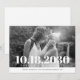 Cartão de "Save the Date" de casamento 5x7 horizontal com um design de tipografia simples e moderno com sobreposição de data em fonte serifada negrito grande e moderna sobre sua foto que você carrega no modelo e digita seus nomes e local e data do casamento para um design rápido e fácil que funcionará com qualquer tema que você escolher posteriormente. As cores de fundo e as fontes são editáveis para combinar com seu esquema de cores, e você pode adicionar mais informações ou fotos adicionais no verso.