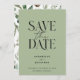 Cartão de data de casamento moderno minimalista com folhagem botânica e escrita greenery não foto. Eucalipto pintado à mão, folhagem minimalista e coroa de rattan rústica moderna dão a este cartão de anúncio um toque luxuoso. Em verdes, marrons e cinzas clássicos.