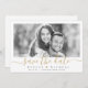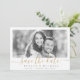 Script moderno "salvar a data" em cor dourada, com foto do casal, simples e elegante. Ótimos cartões de salvar a data com foto para casamentos modernos e outros eventos.