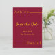 Este elegante casamento burgundy e dourado, salvo a data, é perfeito para um casamento moderno. O simples design apresenta uma elegante caligrafia de ouro num fundo burgundy.