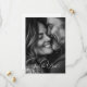 Este cartão de salvar a data do casamento minimalista e simples apresenta texto de caligrafia branca numa foto a preto e branco na frente. No verso, os detalhes são apresentados numa mistura de fonte com serifa e sem serifa. Para personalizar, clique em 'personalizar este design' e adicione as suas informações. A Zazzle faz o resto.