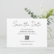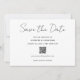 Moderno Minimalista Elegante Tendência Preto E Branco Manuscrito Simples Modelo de Script Com o Seu Código QR do Site de Casamento Convites & Material de Escritório & Anúncios / Salve as Datas / Cartão de Salve a Data Impresso Plano.
