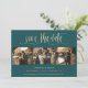 Elegante teal e cartões salve a data de 4 fotos de ouro com um moderno falso título de roteiro de folha de ouro. Personalize facilmente este casamento teal, salve a data com suas imagens e detalhes de casamento, incluindo um site de casamento.
