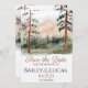 Estes bonitos cartões de salvamento da Montanha são a adição perfeita a qualquer casamento aventureiro. Lindas montanhas de aquarela estão distantes, com pinheiros de aquarela por toda parte. Procure os itens correspondentes vendidos aqui: https://www.zazzle.com/store/heritagematters/products?cg=196507329955919646
