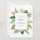 Anuncie a data do seu casamento para familiares e amigos com este cartão de anúncio de save the date personalizável. Ele apresenta uma moldura de aquarela de flores tropicais e folhagens. Personalize adicionando nomes, datas, locais e outros detalhes. Este cartão de save-the-date tropical é perfeito para casamentos de verão.