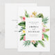 Anuncie a data do seu casamento para familiares e amigos com este cartão de anúncio de save the date personalizável. Ele apresenta uma moldura de aquarela de flores tropicais e folhagens. Personalize adicionando nomes, datas, locais e outros detalhes. Este cartão de save-the-date tropical é perfeito para casamentos de verão.