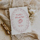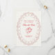 Cartão de salvar a data do casamento inspirado em vintage, adornado com uma ilustração impressionante em forma oval de renda cor de rosa e um querubim. Com caligrafia clássica em uma tonalidade vermelha intensa.