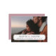 Cartão de casamento moderno e chique com design de aviso prévio. O modelo apresenta espaço para uma das suas fotos de noivado com uma sobreposição de moldura clássica simples, onde você pode adicionar a data do casamento e os nomes da noiva e do noivo. Há espaço no verso para adicionar texto adicional, se necessário. Use as ferramentas de design para personalizar as fontes, mover o texto, alterar os tipos de papel e a cor do fundo para criar um design de anúncio único e personalizado.