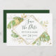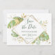 Este convite de save the date tropical moderno apresenta folhagem exótica verde e dourada. Uma moldura geométrica dourada elegante destaca o texto verde escuro. Salpicos dourados acentuam o design botânico elegante e trazem um pouco de capricho sofisticado para o convite. Este design de oásis insular é perfeito para qualquer casamento ao ar livre, na praia ou em um destino.