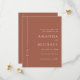 Simples, elegante e sofisticado, este clássico cartão de Save the Date de casamento em terracota apresenta uma fina borda ao longo da borda esquerda com o monograma inicial da noiva e do noivo. Uma combinação de fonte serifada elegante e atemporal combinada com uma fonte de letra cursiva tradicional adiciona simplicidade e elegância ao design. Você pode adicionar, remover ou ajustar a colocação do texto para atender às suas necessidades. O popular fundo terracota em tom terroso com texto bege adiciona à simplicidade limpa deste design. Estes Save the Dates estão disponíveis em formatos impressos e digitais sem papel.