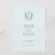 Anuncie a sua noivado com este moderno cartão de data. Ele apresenta uma mistura de tipografia clássica e escrita em turquesa sobre um fundo azul claro e sólido. Entre no monograma da noiva e do noivo no centro de uma crista. Todas as cores podem ser personalizadas para combinar sua paleta de cores de casamento. Use os campos de modelo para personalizar com seu nome e data de casamento. Escolha entre uma variedade de estoques de cartões de qualidade. O meu favorito para isto é o martelo pérola. Misture e combine com muitas das minhas designs para criar seu tema de casamento personalizado. Um design mínimo, mas tropical, para casamentos e noivados. Para ver a suíte de papelaria de casamento correspondente visite www.zazzle.com/dotellabelle
