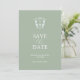 Anuncie o seu noivado com este moderno cartão de save the date. Ele apresenta uma mistura de tipografia clássica e cursiva em branco sobre um fundo verde-sage sólido. Insira o monograma da noiva e do noivo no centro de um brasão azul pálido. Todas as cores podem ser personalizadas para se adequar à paleta de cores do seu casamento. Use os campos do modelo para personalizar com seu nome e data de casamento. Escolha entre uma variedade de papéis de carta de qualidade. Meu favorito para este é o brilho pérola. Misture e combine com muitos dos meus desenhos para criar o tema do seu casamento personalizado. Um design sofisticado e elegante para casamentos e anúncios de noivado. Para ver o conjunto de papelaria de casamento correspondente, visite www.zazzle.com/dotellabelle