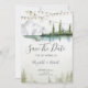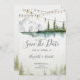 Montanha, floresta, lago e lanternas. Salve a data que pode ser personalizada com seu nome. Selecione o botão "personalizar" para alterar o estilo, a cor e o tamanho da fonte.