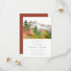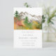 Montanhas de Aquarela de Outono Árvores de Pinheiro Salvar a Data - Uma paisagem montanhosa de aquarela deslumbrante é apresentada em nosso Salve a Data em uma bela paleta de cores de outono. Tipografia moderna e minimalista também é apresentada. Salve a Data faz parte de uma coleção. O verso do convite é mostrado como ferrugem, no entanto, você pode facilmente mudar a cor do fundo para a cor que desejar. Também estará disponível com foto.