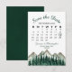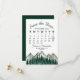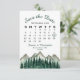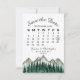 Este casamento Salve o cartão de data é rústico e desarrumado, mas elegante e bonito. Ele apresenta uma paisagem aquosa de picos robustos de montanha com pinheiros no primeiro plano. A design inclui um calendário personalizável do mês do seu casamento com um coração à volta do dia especial. A parte de trás é uma cor verde da floresta marmoreada. Maneira perfeita de deixar seus amigos e família saberem sobre seu próximo casamento.