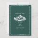 Ilustração de montanhas com árvores verdes e canoa no lago. Barramento de porta. O fundo é cor escura esmeralda.