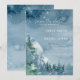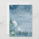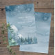 Azul poeirento escuro dos Partidos do Tema salve a data em que o design apresenta árvores de aquarela e montanhas sobre um fundo azul-escuro de aquarela. A tipografia emparelha as letras tradicionais com o texto moderno escrito à mão. #SaveTheDate #DustyBlueWedding