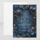 An enchanting deep-navy wedding design wrapped in glowing copper florals and delicate botanical detailing. This immersive, moody palette creates a romantic twilight atmosphere, perfect for elegant evening weddings or couples who love rich, dramatic aesthetics. The ornate frame draws the eye to your names and details, giving the entire piece a luxurious, storybook feel. A sophisticated choice for modern romantics who want their celebration to feel timeless and striking.