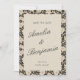 This save the date card features a vintage floral border in soft black and ivory for a refined, timeless look. The structured frame highlights elegant script names and wedding date details, creating a polished first impression for your celebration. Designed to coordinate with a neutral floral wedding suite, this save the date card sets the tone for a classic and thoughtfully styled event. A sophisticated choice for couples drawn to vintage-inspired wedding stationery.