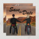 Este único convite para salvar a data apresenta uma bela paisagem rochosa em autoestradas com um casal de menino e menina em motocicletas de mãos dadas. O menino tem cabelo castanho e a menina tem cabelo louro. Outras combinações de cor de cabelo estão disponíveis a pedido! Perfeito para um casal de bicicleta! Personalize facilmente esta opção Salvar a Data com todos os detalhes do seu casamento.