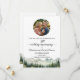 Um elegante Aniversário de Casamento Salve o Cartão de Data com montanhas de aquarela e pinheiros e uma foto especial que você pode personalizar com seus detalhes.