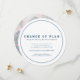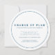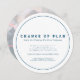 Mudança de plano simples texto clássico cartão azul escuro e branco com uma foto no verso. Deixe seus convidados saberem que seu casamento ou outro evento foi cancelado ou adiado devido a circunstâncias imprevistas.