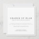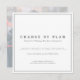 Mudança de plano simples texto cinza e cartão branco com foto no verso. Deixe seus convidados saberem que seu casamento ou outro evento foi cancelado ou adiado devido a circunstâncias imprevistas.