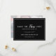 Mudança de planos cartão de texto simples preto e branco com uma foto no verso. Deixe seus convidados saberem que seu casamento ou outro evento foi cancelado ou adiado devido a circunstâncias imprevistas. Outros itens correspondentes estão disponíveis. Projetado por Sarah Trett para www.mylittleedenweddings.com