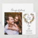 Esta elegante foto mudar a data do cartão apresenta sua foto e uma bela grinalda floral envolvendo sua mensagem de adiamento acima de seus nomes, data e local. O verso tem os detalhes da sua mensagem especial. Criado por Thisisnotme©