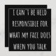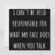 não posso ser responsabilizado pelo que meu rosto faz quando você fala